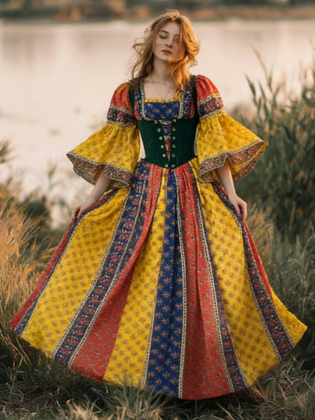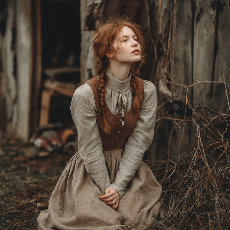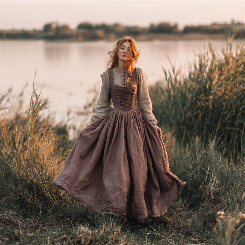 Vintage Medieval Corseted Lace Up Linen Maxi Dress