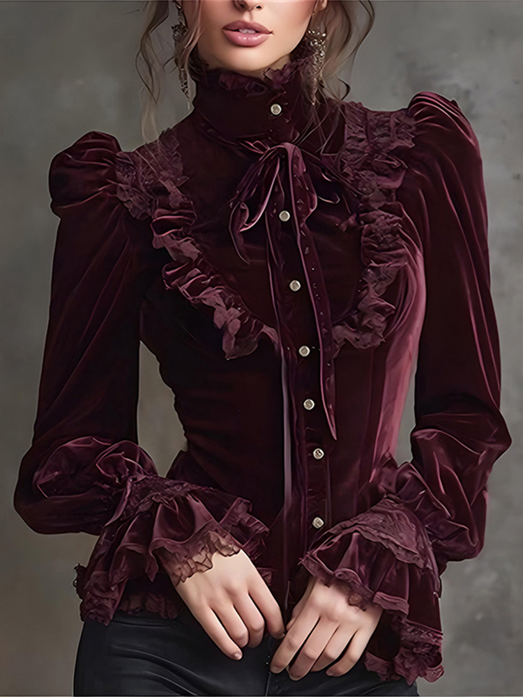 Vintage Elegant Stand Up Collar Hollow Lace Shirt
