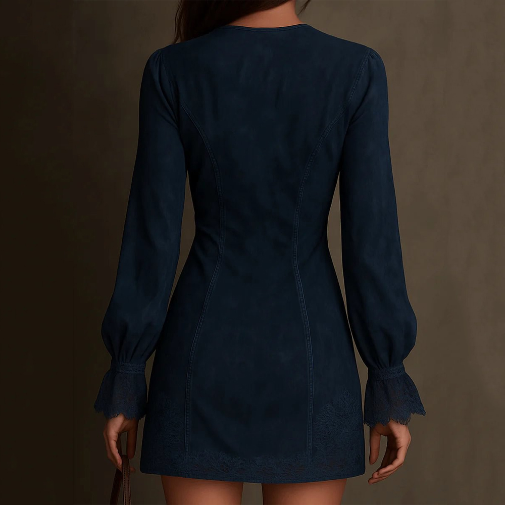 Retro Classy Lace Patchwork Long Sleeve Mini Dress