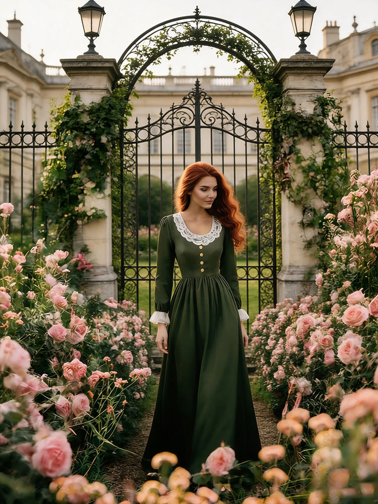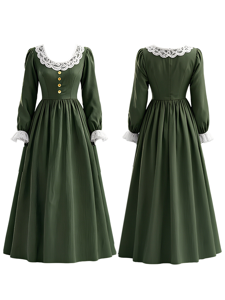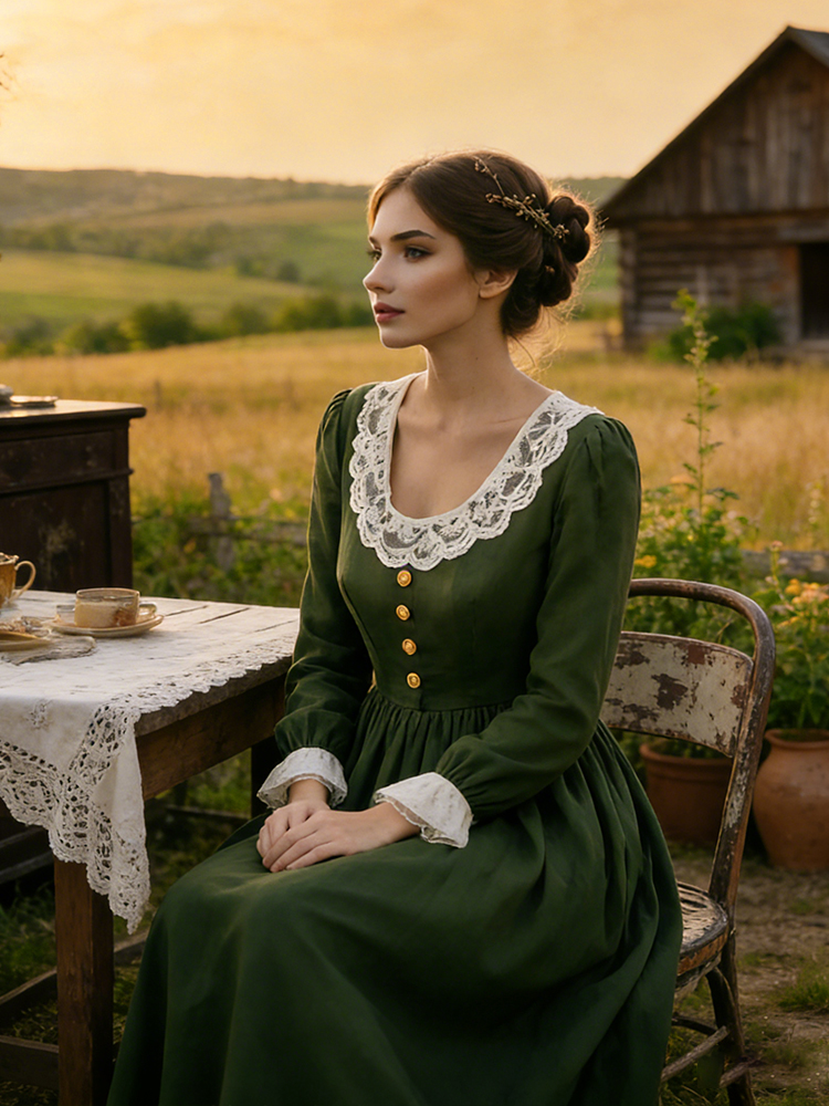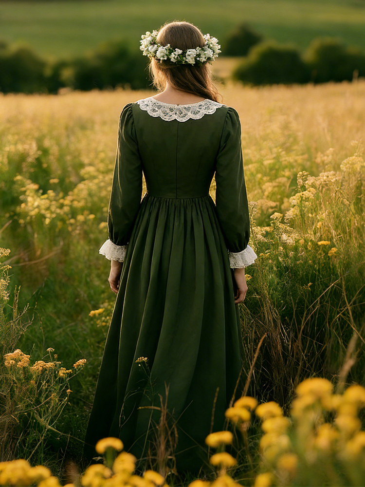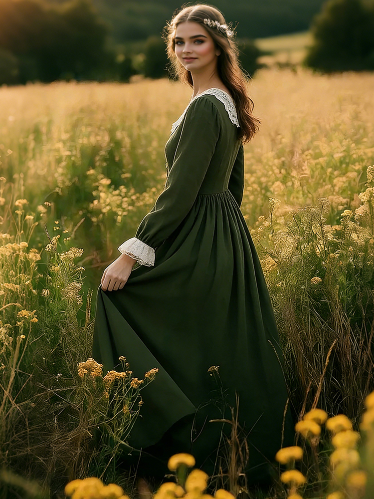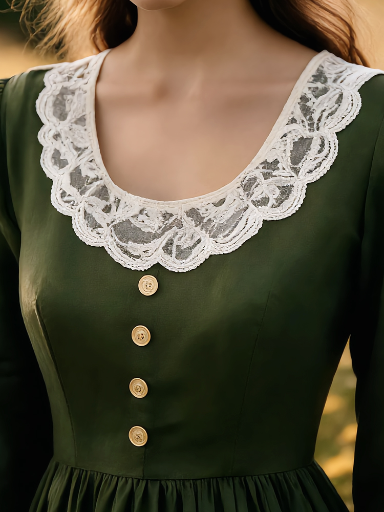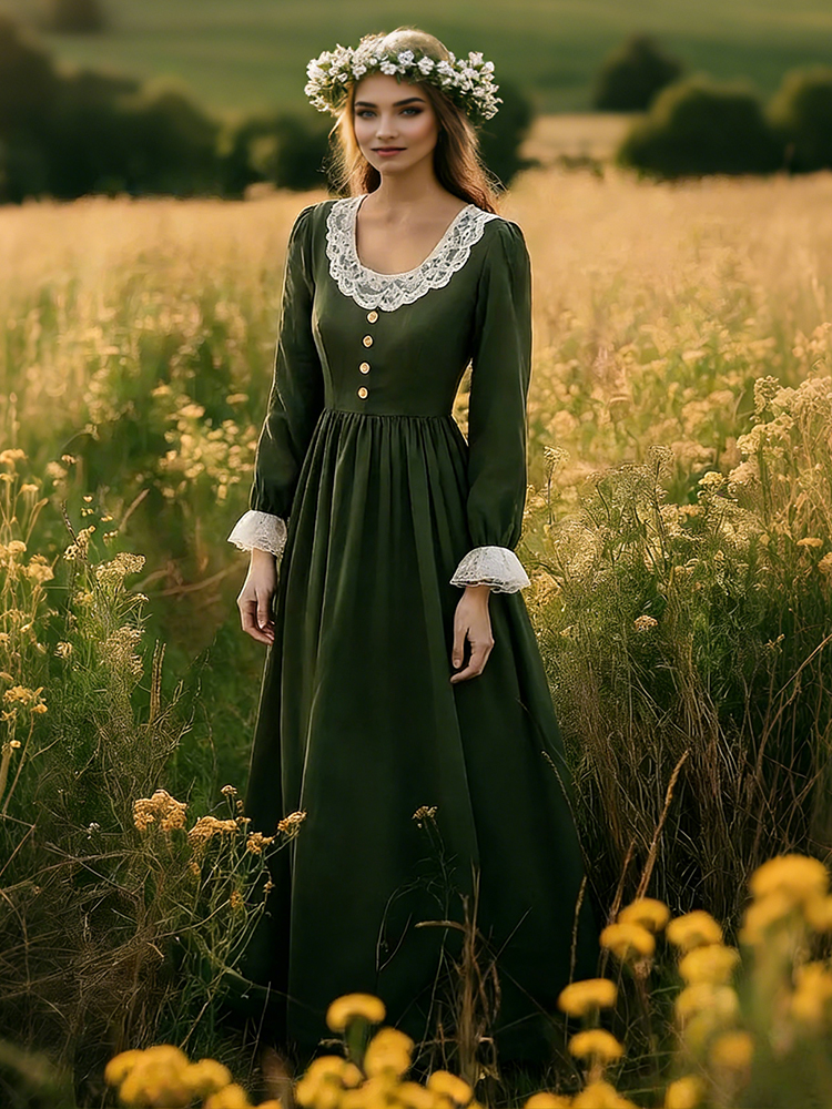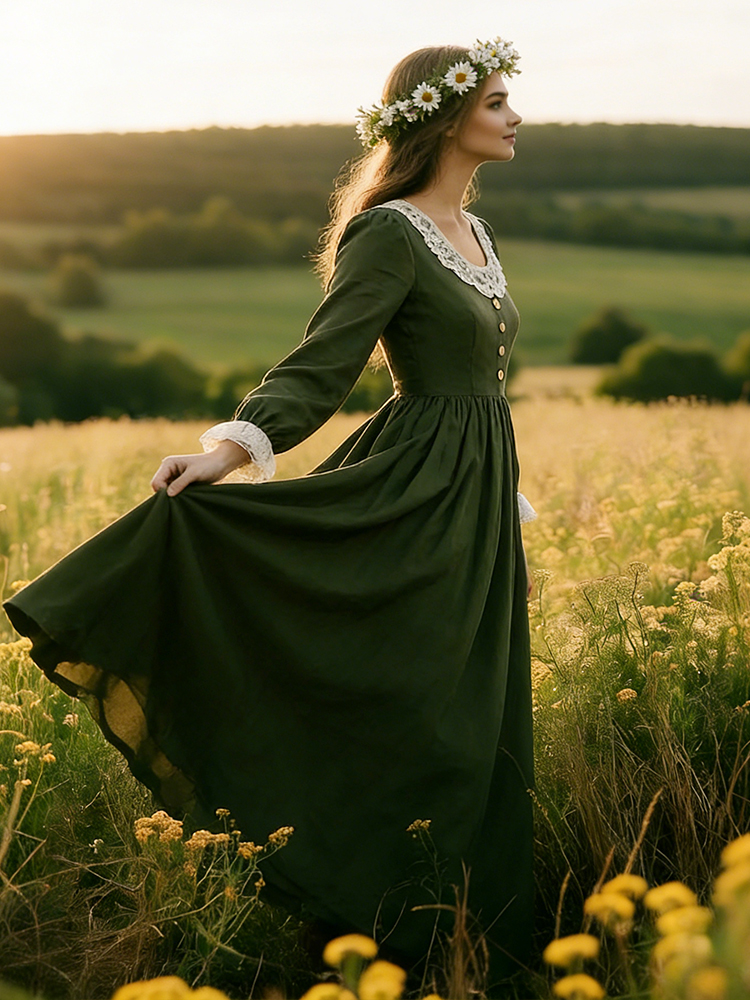 Vintage Lace Patchwork Pleated Linen Maxi Dress