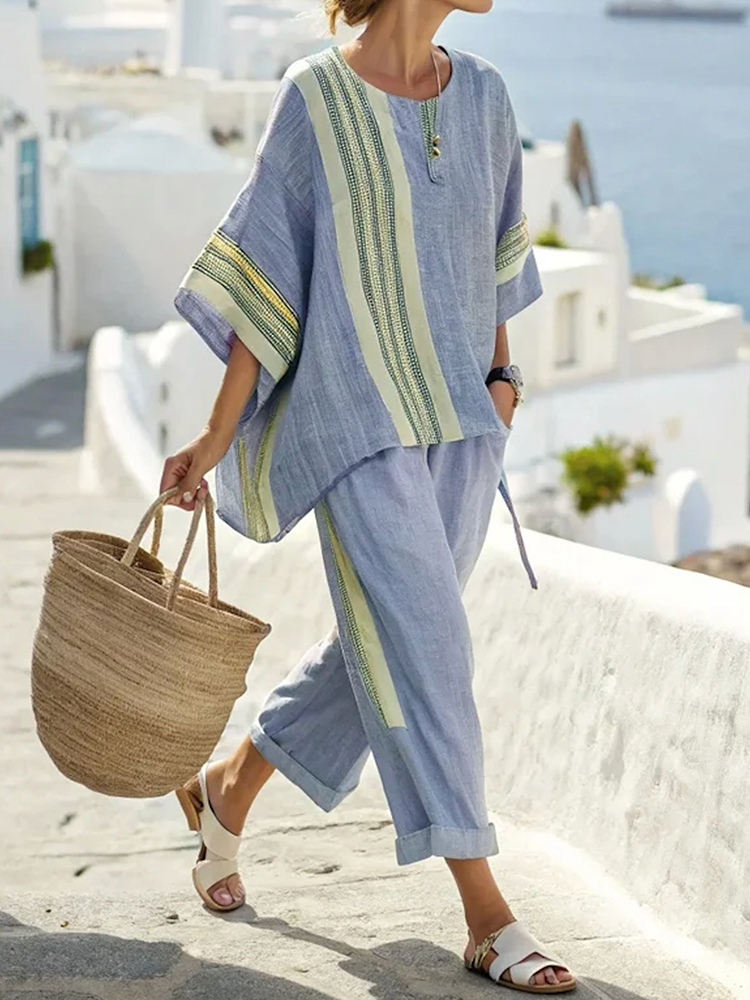Women's Striped T-shirt And Pants Two Piece Set